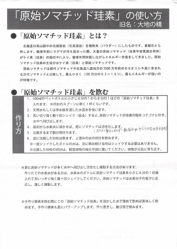 原始ソマチッド(極小珪素宇宙意識生命体)は気のエネルギーや宇宙のエネルギーで更に活発に活動(活性化)しますので、当店で販売する「ホワイト量子エネルギー転写水」「Q-bitコースター」や「きららの石の水」などをご使用頂くと、ソマチッドの力を最大限に発揮する事ができます!